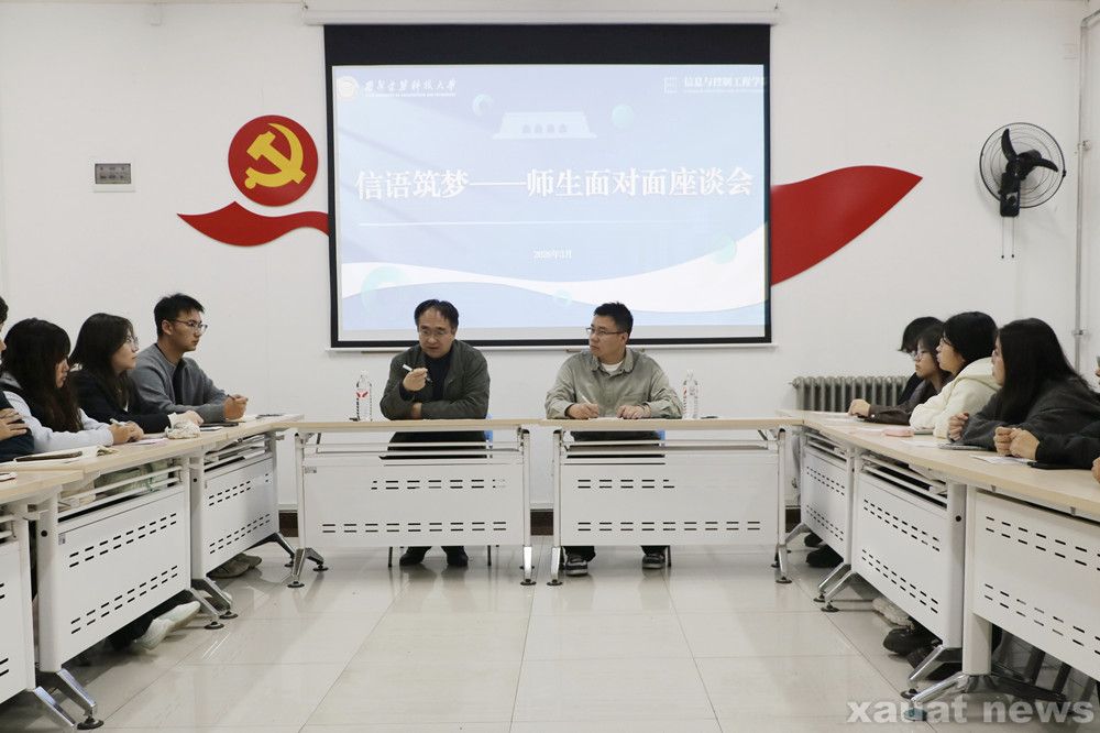 建大新闻网讯 为进一步畅通师生沟通渠道,倾听学生心声,凝聚发展合力,践行育人使命,3月30日,信息与控制工程学院在紫阁1栋“一站式”学生社区召开“信语筑梦——师生面对面”座谈会。学院副院长徐胜军,2024级本科生辅导员代表和各班级学习委员代表参加座谈会。