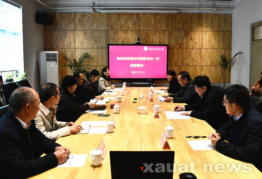 朱晓渭代表学校对郭建树书记来校指导表示欢迎,对省社科联对学校社会科学研究工作给予的支持表示感谢。朱晓渭简要介绍了学校办学历程、人才培养和服务社会情况,并指出,发挥学校学科优势服务陕西经济社会发展,是学校的一项职能和使命,义不容辞,责无旁贷,我们要发挥规划、管理等方面的学术专长,立足立项课题,对县域经济和城镇化问题进行深入研究,为助力陕西新时代高质量发展做出更大贡献。