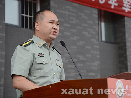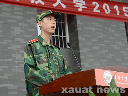 军训团政委、校团委书记陈向阳作了动员讲话。他指出,今年是中国人民抗日战争暨世界反法西斯战争胜利70周年,在大家刚刚怀着激动地心情观看了举世瞩目的大阅兵之后接受此次军事训练,意义更加深远。陈向阳代表军训团向全体教官和参训学子提出要求:要居安思危,牢固树立国防意识;要艰苦训练,在军事训练中增长才干;要继承传统,争做“有理想、有道德、有文化、有纪律”的建大人;要崇尚荣誉,养成压倒一切去争取胜利的意志。