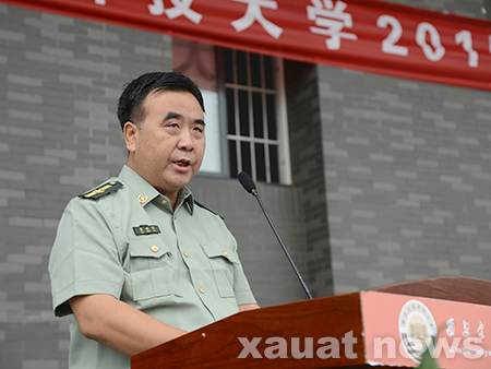 校党委副书记李虎成、副校长刘晓君、邵必林,承训部队中国人民解放军空军训练基地李涛上校以及学校党委办公室、校长办公室、党委宣传部、学生处、财务处、公安处、校团委、武装部等相关部门的负责人以及各院(系)学生工作负责人出席了动员大会。大会由军训团副团长、校武装部副部长车庚顺主持。