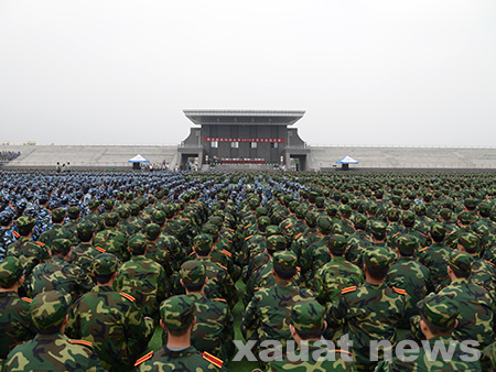 9月7日上午,我校2014级本科生军训动员大会在草堂校区田径场召开。从今日起,学校将对全校4623名2014级本科生进行为期三周的军事训练。