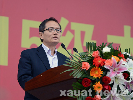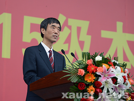 在升国旗仪式后,校长苏三庆做了讲话,他向来自全国各地的新同学们表示热烈的欢迎和衷心的祝贺,并向大家介绍了学校百余年的办学历史和近年来在学科建设、人才培养及社会服务等方面所取得的卓越成绩。苏三庆向广大新同学提出了“大学是什么?为什么要上大学?在大学学什么?大学里怎么学?”四个本源性、必须面对的问题。他说:“从今天开始,所有关于学习、生活的事情,都需要你们主动应对。你们需要自己去图书馆寻找想读的书,你们需要自己去实验室探寻奇妙的数据;你们需要勇于质疑学术和权威,你们需要勇于挑战人生和梦想。”
