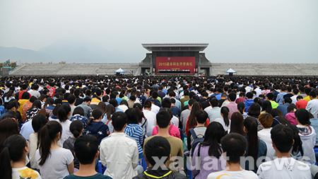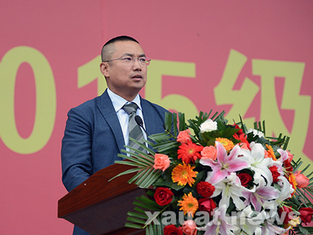 9月18日上午,我校2015级本科生开学典礼在草堂校区南田径场隆重举行。学校领导高明章、苏三庆、田东平、张继良、李福军、刘晓君、邵必林、张志昌、张健、郝际平出席,我校86级校友、北京明弘科贸有限责任公司董事长解勇,86级校友、深圳海盛公司总经理张旭及各职能处(室)、院(系)负责人、教师代表参加了本次活动,与近4500名2015级本科生新同学共同见证了他们大学生活正式启航的重要时刻。典礼由党委办公室、校长办公室主任王树声主持。