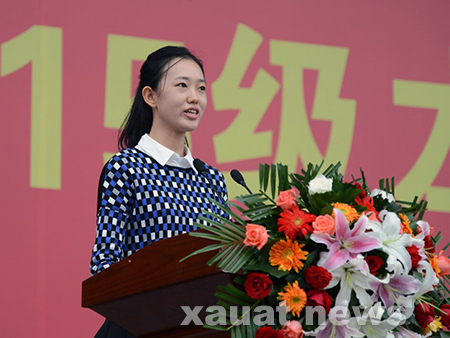 校友解勇,教师代表、宝钢优秀教师奖获得者杨航征教授,在校生代表、管理学院公共事业管理2012级吉洪泽同学,新生代表、艺术学院广播电视编导2015级侯雅欣同学分别发言。最后,开学典礼在一曲高亢激昂的校歌《高举着民族复兴的伟大旗帜》中落下帷幕。