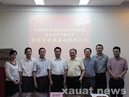 最后,牛院长和吕院长分别代表我校和中国科学院深圳先进技术研究院签署了《联合建立“西安建筑科技大学研究生实践基地”协议书》,并共同为实践基地揭牌。