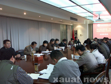 教务处处长姚继涛教授首先对本学期本科教学工作的总体情况进行通报,并就学校新制定的《西安建筑科技大学加强专业建设实施方案》、《西安建筑科技大学加强课程建设实施方案》的主要内容进行说明;教务处副处长何廷树教授通报了本学期开展的2013届毕业设计(论文)工作专项评估及本科生实习基地建设专项检查情况;教务处赵会朋副处长通报了下学期课表编排、本学期教师挂牌授课、教学过程管理及考风建设中存在的问题,并就教学管理信息化、课程考核专项评估奖励办法、规章制度修订及《教师教学工作手册》等工作进行介绍和解读。