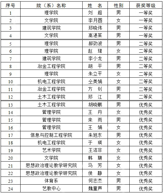 附:我校第十四届青年教师讲课竞赛获奖教师名单