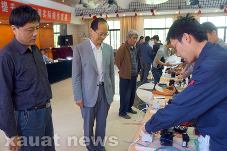 作为总务处生产安全服务月活动的重要组成部分,本着加大工勤培训,适当引入竞赛形式,引导岗位职业发展,提升服务本领的目的,本次技能培训竞赛分为两部分,第一部分的理论培训于3月19日在雁塔校区能源管理中心正式启动,理论部分授课分为电梯的基本原理及简单维修、电力基本知识及简单维修、水暖基本知识及故障维修、节能平台基本知识、电脑硬件构造及简单维修、天然气基本知识及简单维修处理办法等6个内容,共计21课时,两校区共有68人次参加理论培训,并且于4月23日完成理论考试。第二部分的实际操作竞赛由模拟电机停止启动控制操作、三相电表安装和供水管网维修三部分组成。