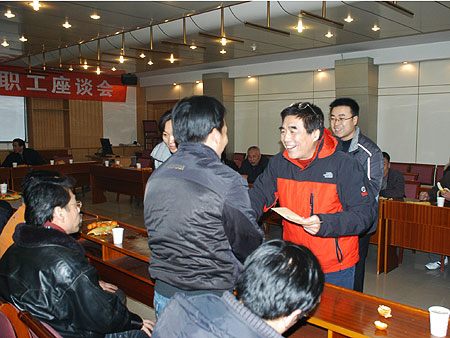 在退休办活动室,徐校长一行与20余名离退休干部代表进行了亲切的座谈,询问了老同志们的生活近况,并向他们介绍了学校今年的主要工作和成绩,对我校2012年的重点工作进行了展望。与会老同志、老干部畅所欲言,积极为学校的发展建言献策。校领导在认真听取建议和意见的同时,对大家多年来一如既往地关心支持学校的改革与发展表示了感谢,并祝愿老同志们新春愉快、健康长寿。