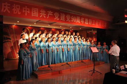 6月22日、23日晚,由校工会主办,校教职工合唱团协会承办的庆祝建党90周年“党在我心中”教职工歌咏比赛在工会三楼活动大厅举行。校党委副书记江楼、李虎成,副校长邵必林,校工会主席马建华,校总会计师胡志军以及来自各院系、部处、党政领导、工会委员及部分教职工共同观看了演出。