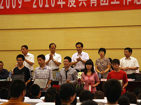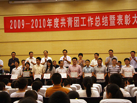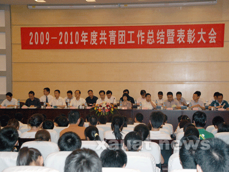 6月2日下午,我校共青团2009—2010年度工作总结暨“争先创优”表彰大会在工科大楼报告厅隆重举行。大会听取了校团委书记张成中所作的2009—2010年度共青团工作总结,对一年来在团的工作中涌现出的优秀集体和个人进行了表彰。校党委副书记王秉琦出席了大会并作了重要讲话。出席大会的还有副校长刘晓君、郝际平以及党办、校办、组织部、宣传部、教务处、科技处、国资处、学生处、总务处、后勤中心、研究生学院等学校部分职能处(室)的负责同志。各院(系)分党委(总支)副书记、分团委(总支)书记和副书记,校学生会和研究生会的主要学生干部以及在本次“争优创先”活动中受表彰的先进集体和先进个人代表参加了大会。大会由校团委副书记曹体进主持。