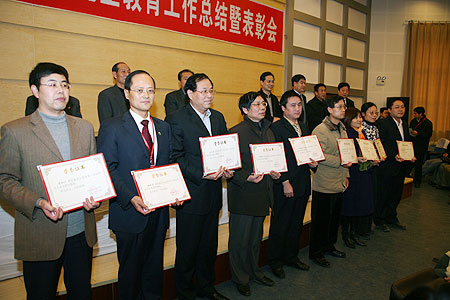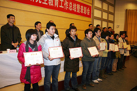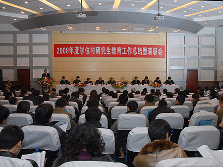 2009年1月4日下午,我校在工科大楼一楼报告厅隆重召开2008年度学位与研究生教育工作总结暨表彰大会。校领导高明章、徐德龙、江楼、王秉琦、王晓昌、段志善、马建华、甘安生、张建、李福军,我校终身教授、著名的钢结构专家陈绍蕃教授及设奖企业代表金诚信矿业集团有限公司董事会秘书郭大地先生和长江精工钢结构公司资深专家刘子祥先生等出席了大会。学校各行政部门负责人,各学院领导及研究生秘书,获奖教师、获奖学生和研究生干部共计370余人参加了大会。大会由副校长段志善教授主持。