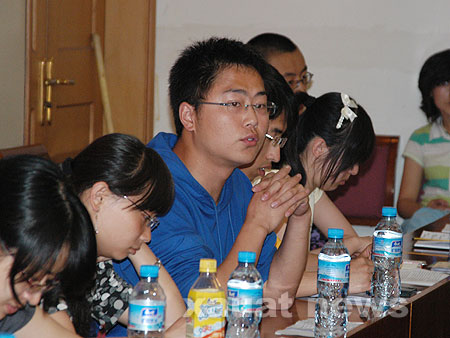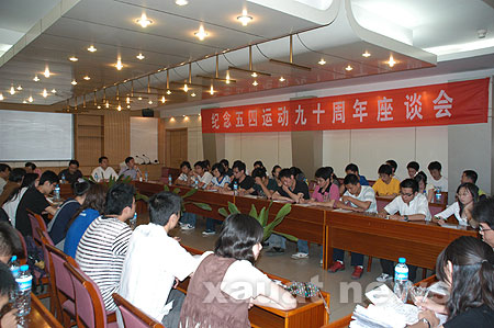 在随后的座谈中,同学们纷纷发言表示,要认真学习胡锦涛总书记和温家宝总理对全国青年学生的讲话,弘扬五四精神,勤奋学习,深入实践,奉献社会。