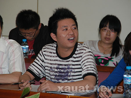 校团委青年教师黄智光在听了同学们的发言后,也谈了自己开展团委工作的感受。他特别指出,当代某些大学生对时政的漠视让人担忧,他希望广大学子要牢记五四精神,将民族的兴旺与 祖国的命运与自身的学习结合起来。