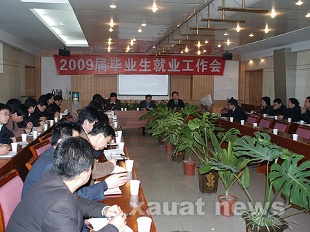 会上,王秉琦副书记首先传达了教育部、省教育厅近期召开的相关会议精神,就当前的就业形势进行了分析,并通报了校内招聘会以及各专业的签约情况。他强调,全校各院(系)和职能部门要充分认识到我校就业面临的严峻形势,在这一非常时期,要主动采取非常措施促进就业工作,确保09届毕业生就业工作平稳顺利完成。同时,他还向与会人员传达了校党委《关于切实加强2009届毕业生就业工作的意见》(西建大党<2008>74号)文件精神,就统一思想,提高认识;加强领导,落实责任;广泛动员,开辟就业渠道;加强就业指导服务体系;重点做好研究生、华清学院毕业生就业工作;认真做好思想教育,维护就业安全和校园稳定;进一步完善毕业生就业工作长效机制;建立有效的激励、约束和监督机制等方面的工作做了详细的安排和部署。