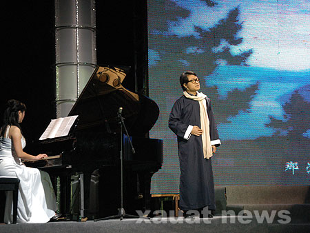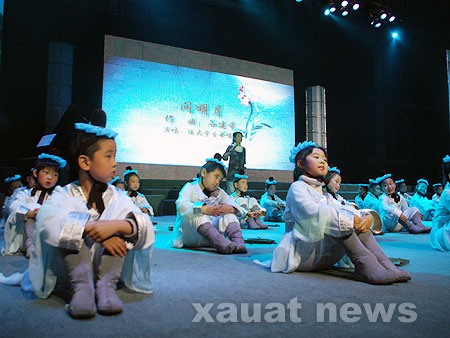 开幕式结束后,诗歌朗诵汇演正式拉开帷幕。汇演由三大乐章组成:《家》、《校》、《国》。在第一乐章《家》中,附小同学齐颂的《游子吟》,饱含了远在他乡的儿女对母亲的挂念;由教工朗诵的配乐抒情诗《乡愁》,则抒发了台湾游子对祖国大陆的眷恋。在第二乐章《校》中,一首款款深情的《绿色的记忆》,让观众在绿色校园中体味到“十年树木、百年树人”的深意;由徐德龙校长作词,著名播音艺术家海茵老师朗诵的《壮严》,则让大家缅怀了我校一位英年早逝的师长;由陕西省委宣传部副部长薛保勤创作,西安市团市委书记李彬朗诵的《将军,你不要流泪》以及由我省知名作家、诗人商子秦老师创作,播音艺术家包志坚老师和我校许志敏老师朗诵的《我们众志成城》,则再次让我们回味了那场发生在四川大地的上惊心动魄的灾难,以及在灾难面前,我们风雨同舟、众志成城,共同唱响的一曲与灾区人民同呼吸共命运的建大之歌。在第三乐章《国》中,观众们则一同回味了文天祥的《过零丁洋》、陆游的《示儿》、毛主席的《沁园春?雪》、艾青的《我爱这土地》以及舒婷的《祖国,我亲爱的祖国》等脍炙人口的爱国诗篇,领略了古今优秀的中华儿女对祖国的无比深情,进一步激发了师生对祖国兴衰的历史使命感和责任感。