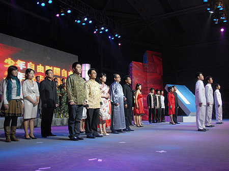 晚会最后,全场师生齐声朗诵梁启超的不朽名作《少年中国说》,将晚会的气氛推向高潮??“少年智则国智,少年富则国富,少年强则国强”的诗句响遍了整个建大校园,也深深刻印在每个人的心间。