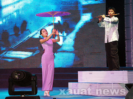 陕西省委宣传部副部长薛保勤,陕西省教育厅副厅长、省语言文字工作委员会办公室主任吕明凯,西安市团市委书记李彬,省语言文字工作处处长田民正,省知名诗人、市文联副秘书长商子秦,陕西人民广播电台播音艺术家海茵、包志坚等嘉宾应邀莅临晚会现场,校领导徐德龙、王秉琦、马建华、李福军等出席了晚会。