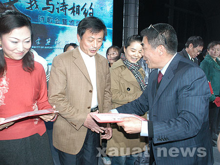 值得一提的是,在今年上半年陕西省委宣传部、省文化厅、省教育厅、省作协等单位联合举办的全省“中华文明赞”诗词歌赋朗诵比赛中,我校推荐的《春江花月夜》、《地球我的母亲》、《曲江池赋》、《祖国,我不用言语》4件作品全部获奖,分获一等奖2件(全省一等奖共8件);二等奖2件。在陕西作为文化大省,各地市、各高校竞争激烈的情况之下,西安建筑科技大学诗歌作品获奖数量和等级位居全省之首。目前,学校正着手结集优秀诗作出版《西安建筑科技大学学校园诗歌作品选》。