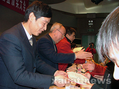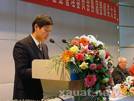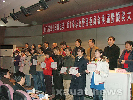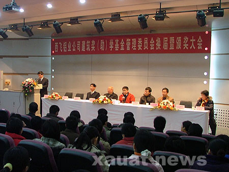 1月10日上午,西飞铝业公司建筑奖(助)学基金管理委员会换届暨颁奖大会在我校粉体楼报告厅举行。大会审议通过了第二届管理委员委员名单,并对获得06年西飞铝业公司建筑奖(助)学基金的学生进行了颁奖。省人大副主任桂中岳,西飞铝业公司副总经理潘耀强、技术部副部长范彤利,以及受资助的四所高校--西安建筑科技大学、西安交通大学、西北工业大学、长安大学的校方代表出席了大会。
