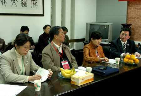 专家组组长钱仁根教授、秘书吕楠和人文学院教师代表座谈