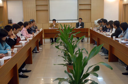 专家组副组长姜茂发教授、专家组成员王伯伟教授组织学生座谈会
