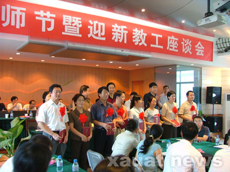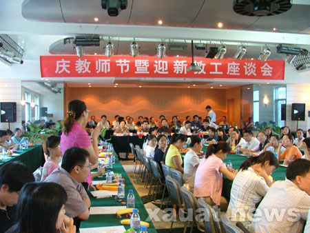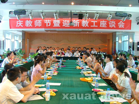 在第21个教师节来临之际(教师节专题),学校于9月9日上午在工会附体三楼多功能厅召开了庆教师节暨欢迎新教工座谈会。校领导徐德龙、王秉琦、王晓昌、段志善、马建华、马国联及党办、校办、组织部、人事处、宣传部、统战部、教务处、科技处、研究生学院、财务处、国资处、总务处和工会等职能部门负责人以及166名新教工参加了座谈会。座谈会由工会主席马国联主持。