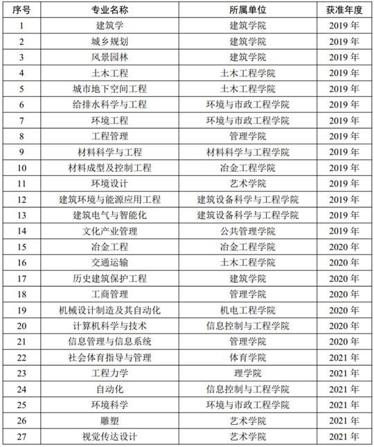 近年来,学校聚焦新时代高等教育发展变革,积极探索符合学校办学特色的一流专业建设改革路径,按照“人才培养过程全贯穿、教学环节全覆盖、教师全参与”的专业建设思路,以“四个层次、五个类别”专业项目建设为抓手,落实推进专业建设规划实施,不断强化专业内涵建设,提升专业实力。下一步,学校将围绕“11445”发展新格局建设任务,以“建筑科技”学科链为发展轴线,充分发挥“双万计划”一流本科专业示范辐射作用,加强顶层设计,优化专业结构,推动专业按照“智能+、绿色+、健康+、国际+”的“四+”转型路径建设发展,加快建设高水平本科教育,全面提高人才培养能力。