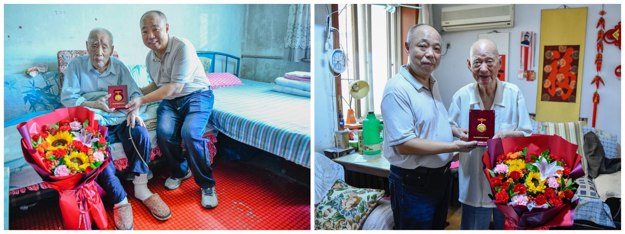 慰问活动中,董群雁为杨世昌和李三明两位老同志郑重颁发“中国人民抗日战争胜利80周年”纪念章,对他们荣获这一荣誉表示热烈祝贺并致以崇高敬意。他与老同志促膝交谈,详细询问他们的身体近况、家庭生活及实际需求,叮嘱老同志保重身体、安享晚年。