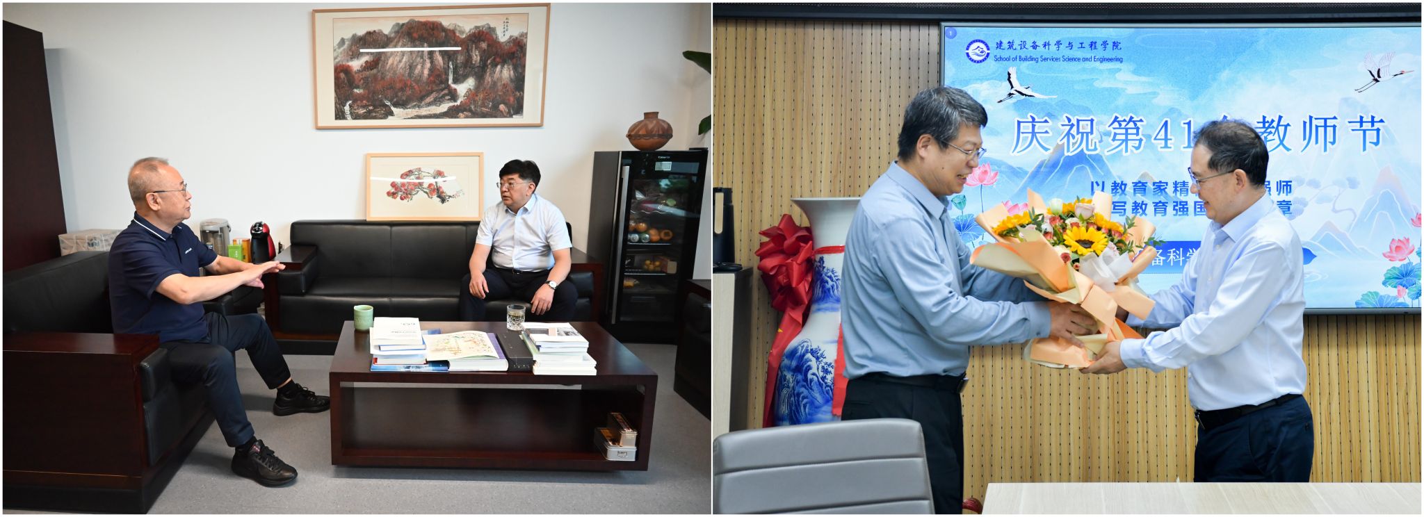 9月10日上午,学校领导朱晓渭、赵祥模、陈琪、陈荣、高旭阔还分别慰问了学校高层次人才和教师代表。