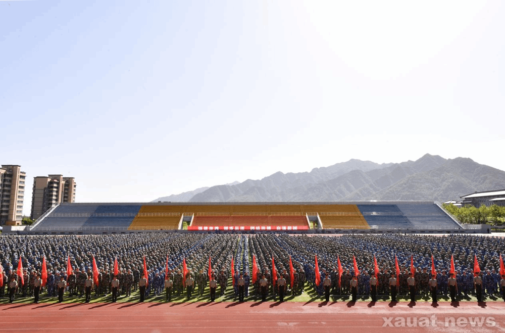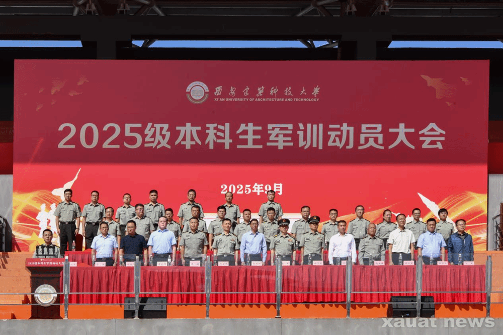 建大新闻网讯 9月8日上午,西安建筑科技大学2025级本科生军训动员大会在草堂校区南山田径场举行。校党委副书记张晓辉、承训部队陆军边海防学院、西安市碑林区武装部相关人员出席动员大会。党办校办、宣传部、本科生院、财务处、保卫部、草堂校区管委会办公室、后勤服务中心、校医院等部门负责人,各学院学生工作负责人、军训教官、2025级本科生辅导员及5000余名新生参加。大会由军训旅政委、校团委书记孙宏哲主持。