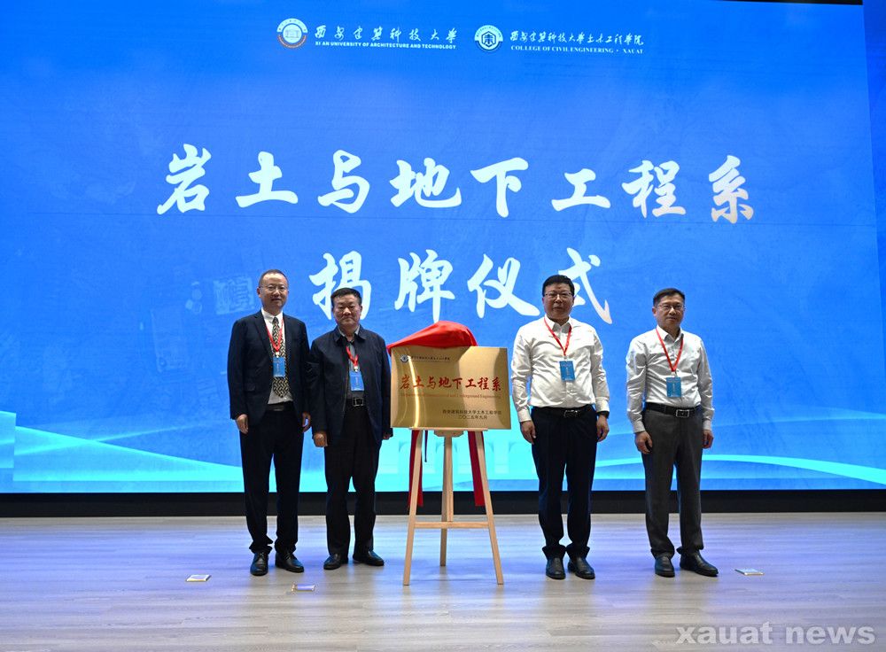 学院院长薛建阳教授宣读了《西安建筑科技大学土木工程学院岩土与地下工程系成立的通知》。刘晓武、郑建国、党发宁、薛建阳共同为岩土与地下工程系揭牌。