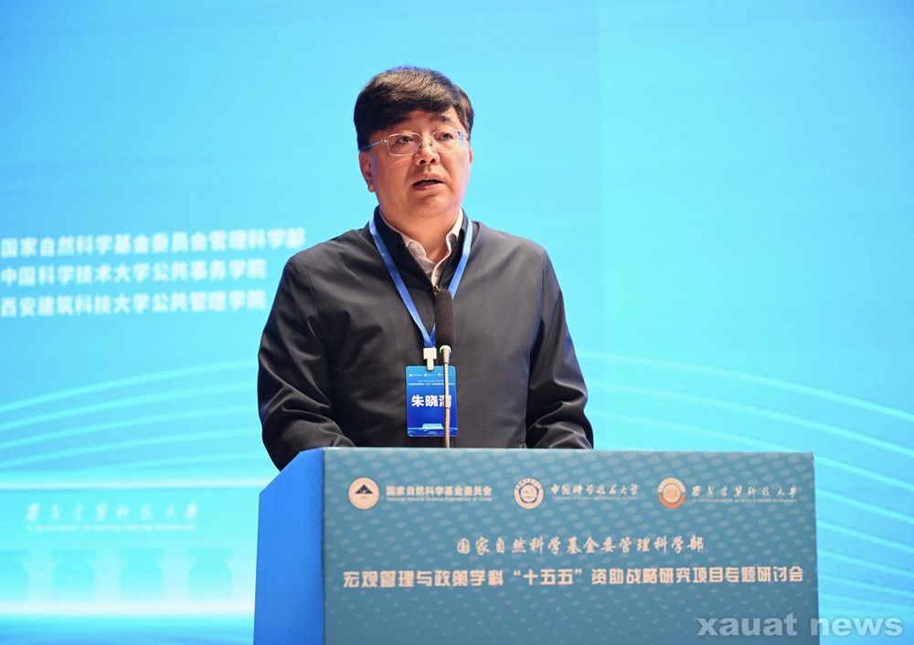 朱晓渭代表我校向与会专家表示欢迎,对国家自然科学基金委及学界同仁长期支持学校的发展致以感谢。他系统介绍了我校管理类学科发展沿革与研究特色,并希望以此次研讨会为契机,持续深化与国家自然科学基金委的交流合作,同时期待各位专家学者为学校创建“双一流”工作多提宝贵意见,共同为学校“十五五”规划开好篇谋好局。