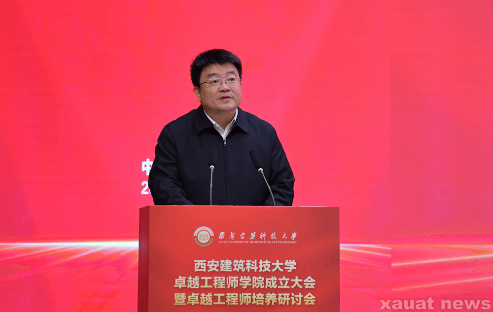 吴振磊在致辞中对学校卓越工程师学院的成立表示祝贺。他强调,卓越工程师培养是教育、科技、人才三位一体的重要载体,是陕西省贯彻落实国家卓越工程师培养战略部署的重要实践。他要求,学校要坚持立德树人,创新人才培养模式,深化产教融合,强化内涵建设,努力为我省卓越工程师培养迈向更高水平,为服务国家重大战略和陕西高质量发展作出新的更大贡献。