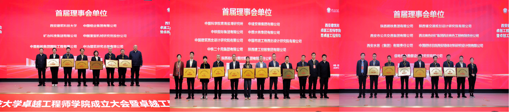 我校党委副书记张晓辉宣读了《关于西安建筑科技大学成立卓越工程师学院的决定》。在全体与会嘉宾的见证下,韩宏琪、张晓峰、吴振磊等共同为卓越工程师学院揭牌,并为22家理事单位授牌,开启卓越工程师学院建设新篇章。