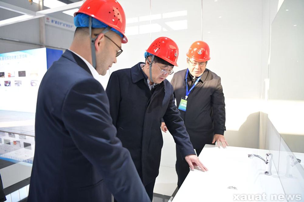 会后,朱晓渭一行参观了我校核心技术投产使用的韩城煤矸石绿色无害化综合处置示范线项目和韩城龙钢年产150万吨钢铁渣粉项目。