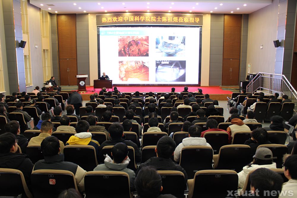 座谈会后,陈祖煜院士参观了学校意诚科技馆,并作客我校“建筑科技”学术论坛——“大先生”讲堂为土木工程学院300余名师生带来了一场题为“人工智能在隧道掘进机施工地质灾害预测中的应用”的学术报告。