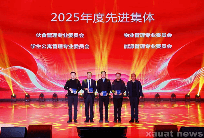 活动现场对2025年度陕西省教育后勤协会先进集体与个人进行了表彰。我校牵头负责的陕西省教育后勤协会能源管理专业委员会获评“先进集体”,总务处王运思、赵欣悦、贾瑶与后勤服务中心陈林波四位同志获评“先进个人”。