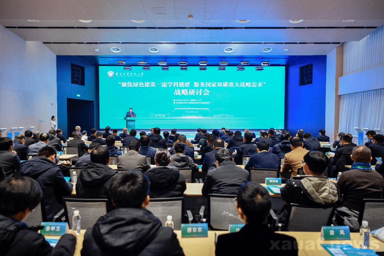 建大新闻网讯 1月25日,我校在雁塔校区举办“聚焦绿色建筑一流学科链群 服务国家双碳重大战略需求”战略研讨会。来自国家工信部、教育部、科技部、住建部的相关司领导,陕西省相关厅局领导,15位中国工程院、中国科学院院士,行业龙头企业负责人和相关学科领域的国家级高层次人才代表等百余人齐聚一堂,共商绿色建筑学科发展与国家“双碳”战略目标深度融合路径。