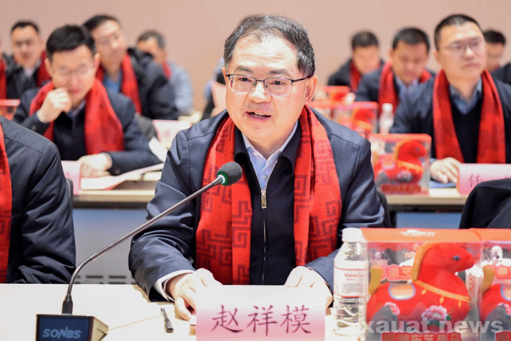 赵祥模指出,2026 年是学校办学 130 年并校 70 周年的重要节点,也是冲刺国家“双一流”最为关键的阶段。当前学校多项核心办学指标已位居省属高校前列,绿色建筑一流学科链群建设向全球领先迈进,建筑学学科已成为本轮陕西冲刺 “双一流”中最具竞争力的学科。全校师生正以“赶考”的心态、冲刺的姿态,为实现几代建大人的光荣与梦想而全力以赴。广大校友是母校办学育人成效的生动展示,是学校推进“双一流”建设最可信赖的力量之源,期盼校友们持续为学校学科建设、人才培养、科学研究、管理服务等方面把脉问诊、传经送宝,发挥桥梁纽带作用,汇聚发展合力,在学校关键技术攻关、成果转化、平台共建等方面深度参与并开展实质性合作,共建共享发展成果,与母校携手并肩,乘风破浪,胜利驶向“双一流”目标。
