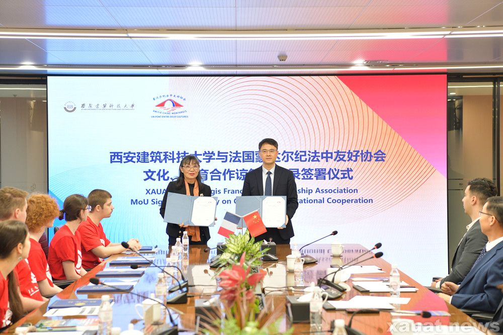 王培文对我校的热情接待表示感谢。她提到,蒙达尔纪是中法友谊的重要见证地,协会始终珍视并致力于传承两国之间的深厚情谊。此次与西安建筑科技大学签署合作协议,标志着双方在教育文化领域的合作迈出了坚实一步。她希望以海外优质生源基地为纽带,推动更多法国青年学子了解中国、走进建大,为中法友谊注入新的青春活力。