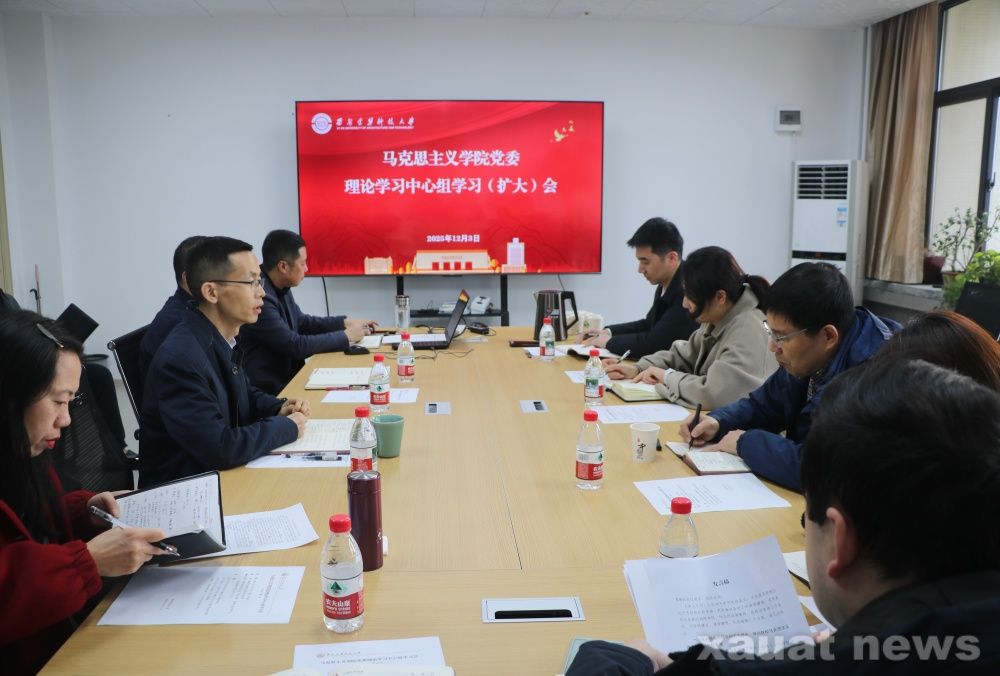 建大新闻网讯 12月3日上午,马克思主义学院党委在雁塔校区教学大楼918会议室召开党委理论学习中心组(扩大)学习会。校纪检监察室副主任刘伟波、党委宣传部副部长海静、理论学习秘书梁倩到会督导。学院党委委员、纪委委员、院长助理、党支部书记、全体机关工作人员参加会议。会议由学院党委书记师帅朋主持。
