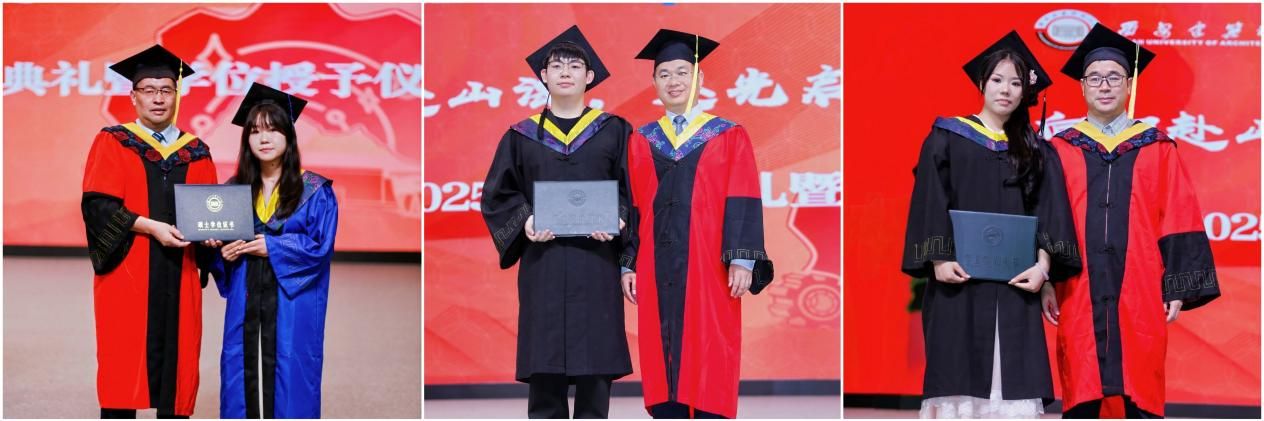 王凯宣读机电工程学院2025届西安建筑科技大学优秀毕业生表彰名单,学院党委书记王永亮,朱丽华教授向优秀毕业生颁发证书。机电工程学院副院长成彬、李玲教授为校友联络员颁发聘书,王永亮和毕业生代表互赠纪念礼物。