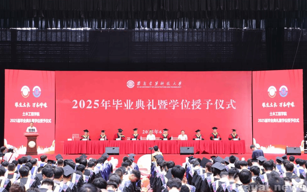 建大新闻网讯 6月22日上午,土木工程学院2025年毕业典礼暨学位授予仪式在雁塔校区文体馆举行。学院领导班子成员、学位委员会委员、各教研室、实验室党支部书记、主任和校友代表以及2025届全体毕业生参加仪式。典礼由学院党委副书记、副院长李路路主持。