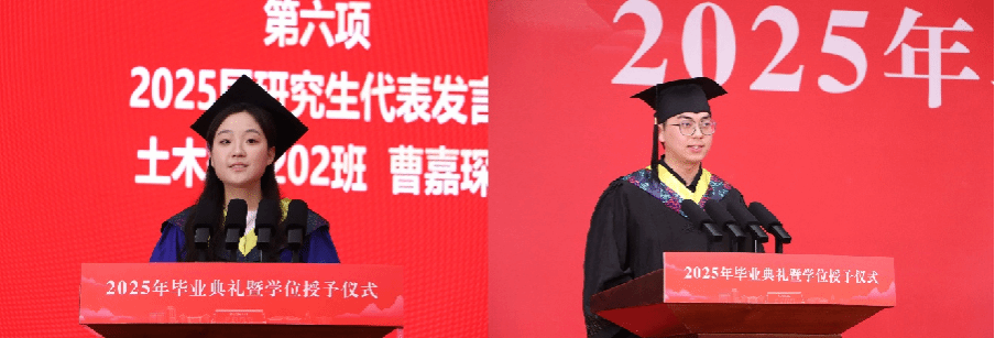 毕业研究生代表结构工程专业2202班曹嘉琛,毕业本科生代表土木工程专业2101班李峙分别发言。