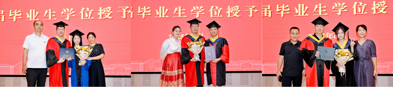社会合作处处长、校董校友会办公室主任于鹏为毕业生校友联络员颁发聘书,校党委研究生工作部副部长孙琦为优秀毕业生颁发获奖证书。学院副院长冯增喜、高然代表学院向毕业生赠送毕业礼物,并为毕业生扶正流苏、颁发学位证书。