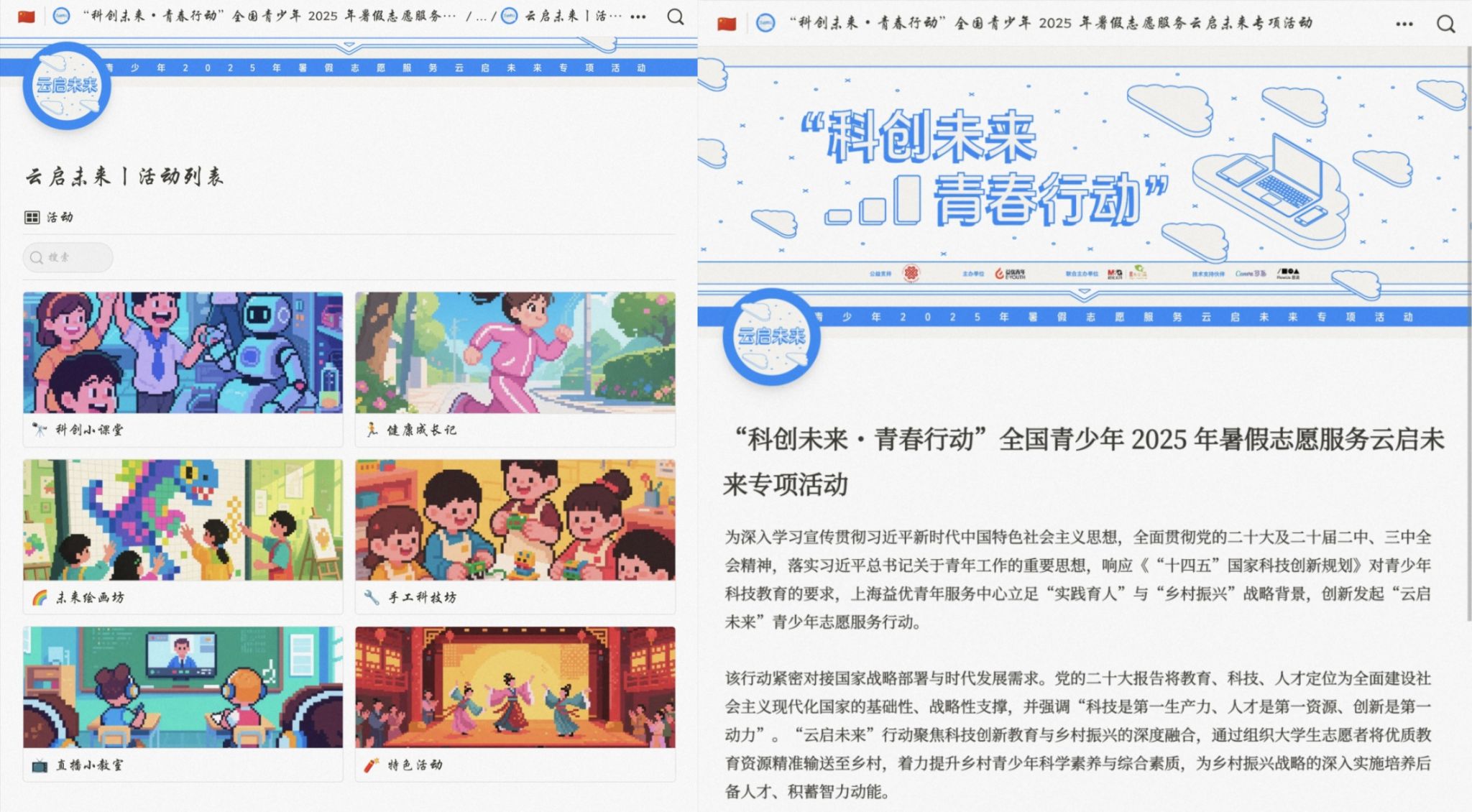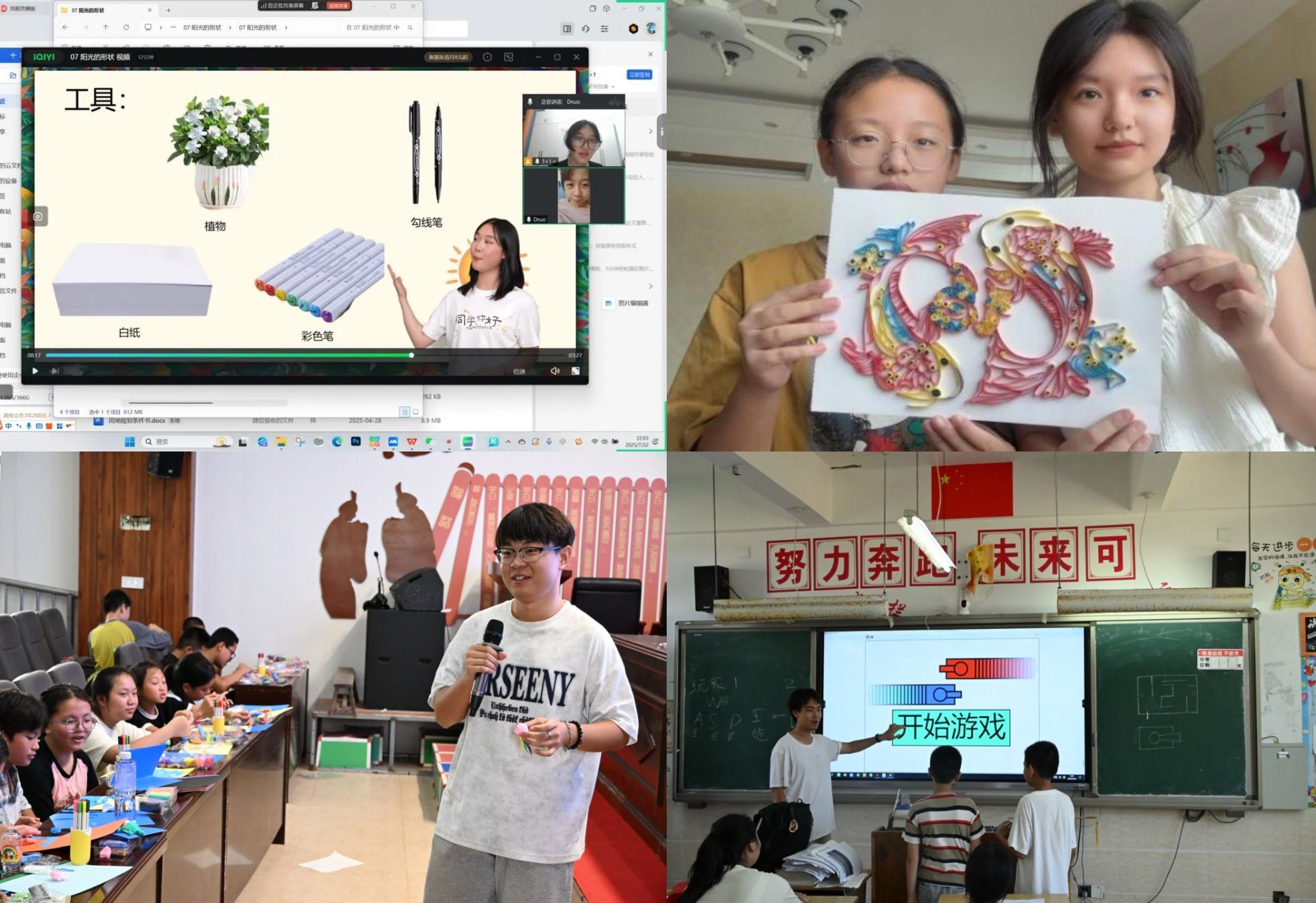 匠心筹备,筑牢云端课堂的基石。为了让云端课堂真正走进乡村孩子的学习生活,团队从6月初就开始了紧锣密鼓的筹备工作。面向全校招募志愿者时,我们设置了“专业技能+沟通能力+教育热忱”三重考核体系,最终从众多报名者中选拔出302人,团队成员由自动化、计算机科学与技术、建筑学、绘画等20余个专业的302名学生组成,跨学科的组合让科创与艺术课程更具活力。随后的培训更是精益求精,连续两周,每天4小时的系统培训涵盖了编程教学的情景化设计、艺术启蒙的互动技巧、留守儿童心理特点分析,以及各种突发状况的应急预案。最让我印象深刻的是实战演练环节——我们模拟了“学生突然掉线时如何保持课堂连贯性”“网络延迟情况下如何调整教学节奏”等12个典型场景,确保每位志愿者都能处变不惊。我们还提前录制了15分钟“平台操作指南”,细化到“如何切换摄像头”“怎样上传作业”等步骤,确保每个家庭都能轻松上手。这份“笨功夫”,只为让开课时的每一分钟都聚焦教学本身。