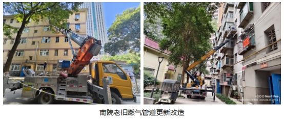 对接碑林区政府,配合做好政府投资建设项目南院老旧燃气管道更新改造,项目暑期启动施工,预计工期180天。截止目前,完成了南院家属区24栋楼宇的燃气立管改造。