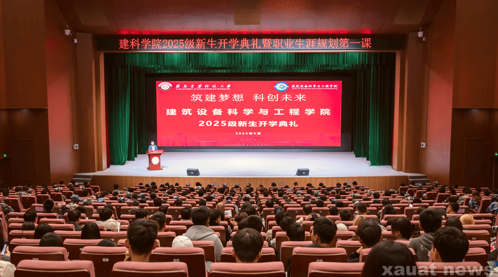 建大新闻网讯 9月21日,建筑设备科学与工程学院2025级学生开学典礼暨职业生涯规划第一课在草堂校区紫阁大礼堂举办。建筑环境与能源应用工程(以下简称“建环”)专业2009届校友、中建华夏建设发展有限公司执行董事兼总经理陈炜,建环专业2012届校友、中国兵器二〇六所基建处项目技术总工孙嘉慈,学院班子成员、各(系)中心主任、副主任,党支部书记、机关办公室负责人,全体辅导员、新生班主任以及2025级全体学生出席典礼。典礼由学院党委副书记、副院长叶磊主持。