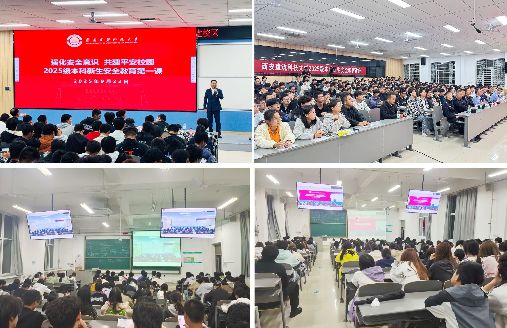 建大新闻网讯 为增强全体新生安全防范意识,提高安全防范能力,9月22日,保卫部(处)联合党委宣传部、网络与信息化管理处、学生工作部(处)、校医院、西安市公安局高新分局、西安市公安局交警支队高新大队、西安市消防救援支队高新大队举办以“强化安全意识,共建平安校园”为主题的2025级本科新生安全教育第一课。全体2025级本科新生以及各学院学生工作负责人、辅导员共计5100余人参加讲座。